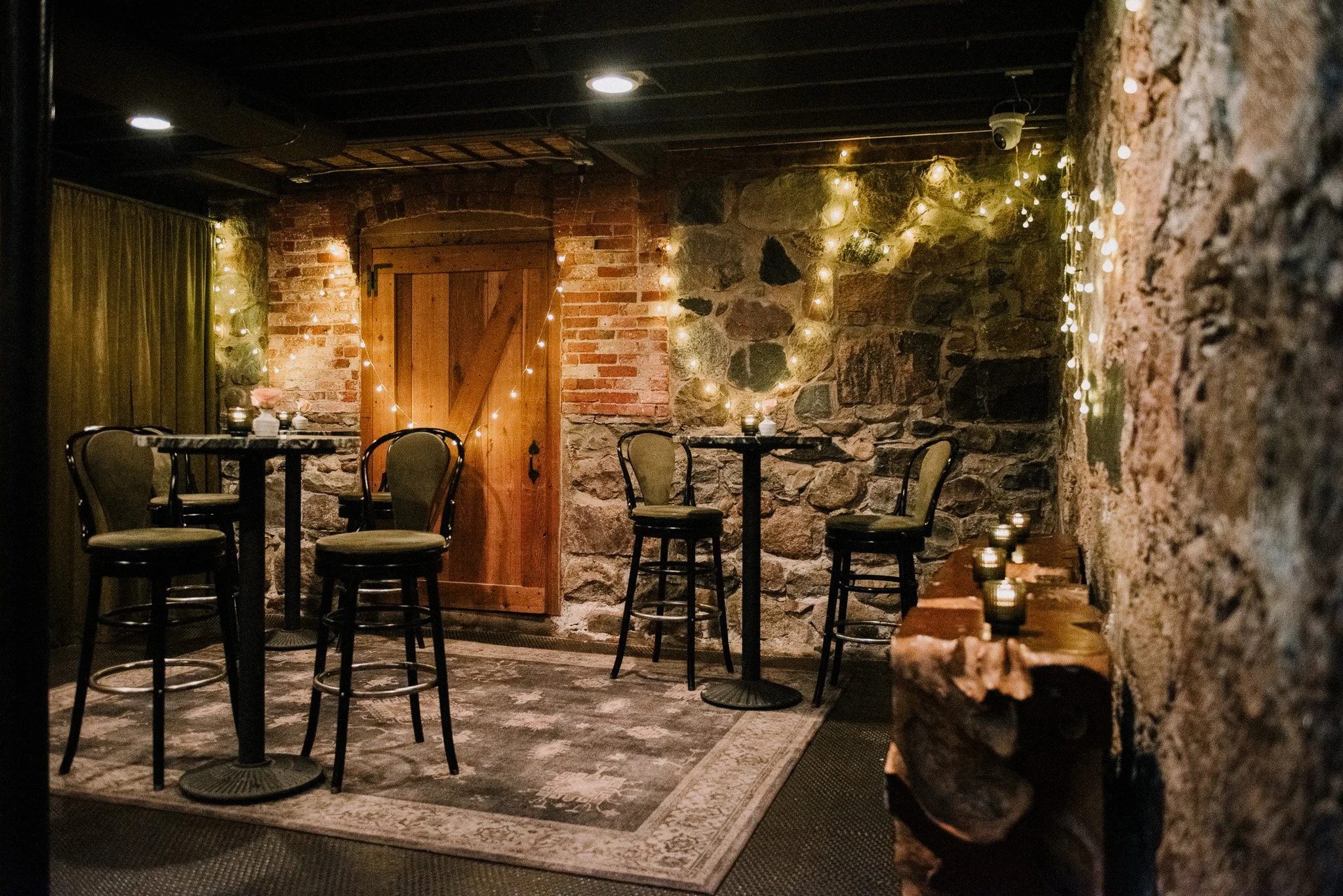 Nestled in the lower level of our historic building, our Wine Cellar features two elegant wooden tables, creating the perfect setting for your next private dinner.